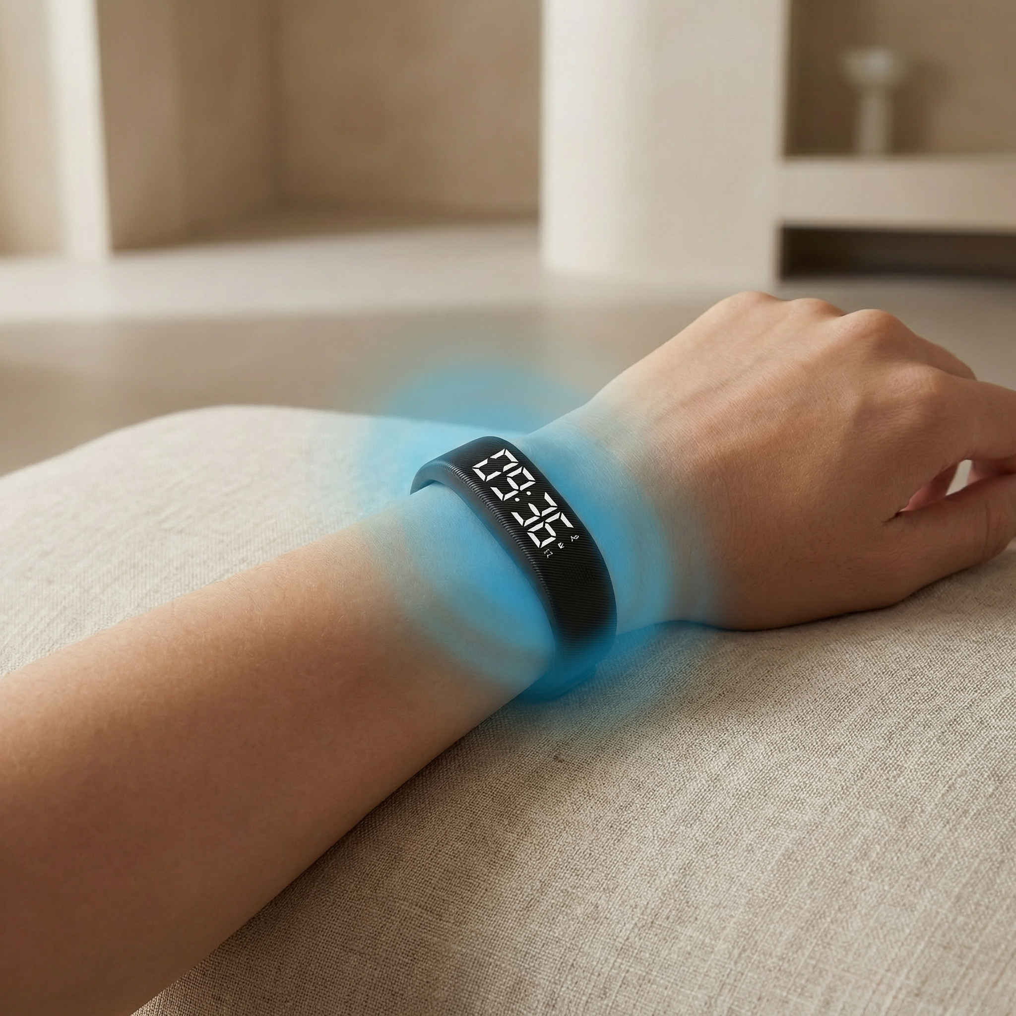 Wakelyt Pulse uses a soft vibration to wake you up without noise. It’s precise, personal, and designed to start your day calmly without disturbing anyone around you.